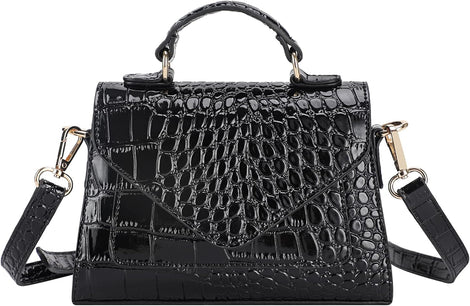 - TRENDY AND CHIC CROCODILE EMBOSSED DESIGN: Crocodile embossing and gleaming hardware elevate the sophisticated look of a structured mini bag styled with a top handle and adjustable crossbody strap.This kind of embossing imitates the skins of exotic animal such as alligator and crocodiles, what’s more, the texture and feel of this leather is realistic to that of real alligator or crocodile hides.