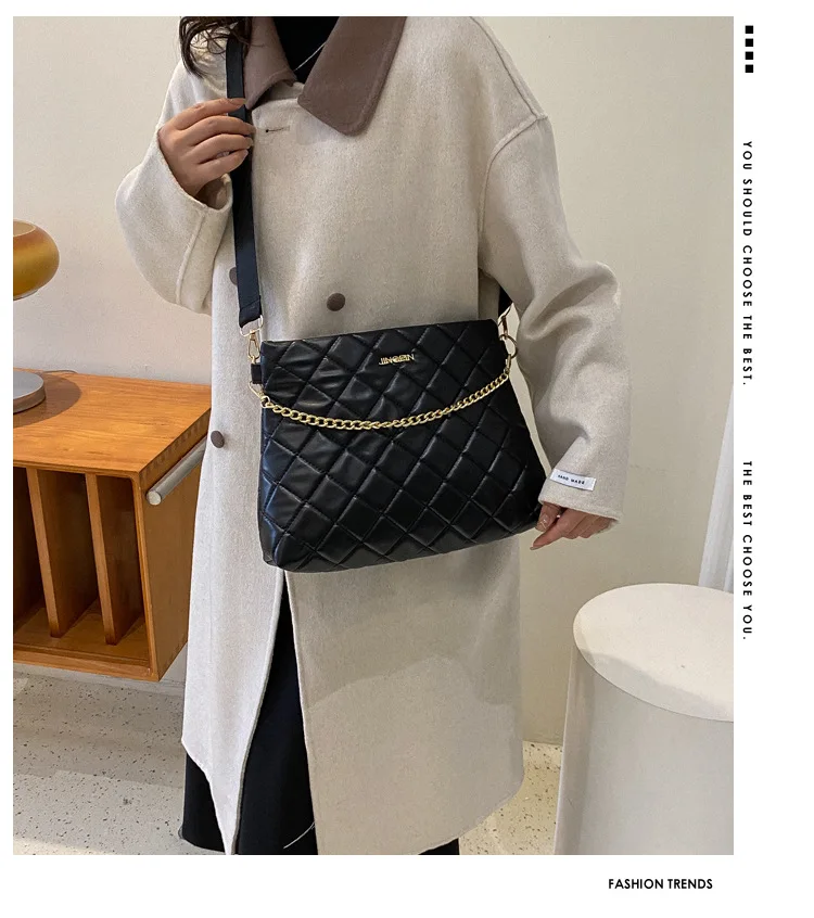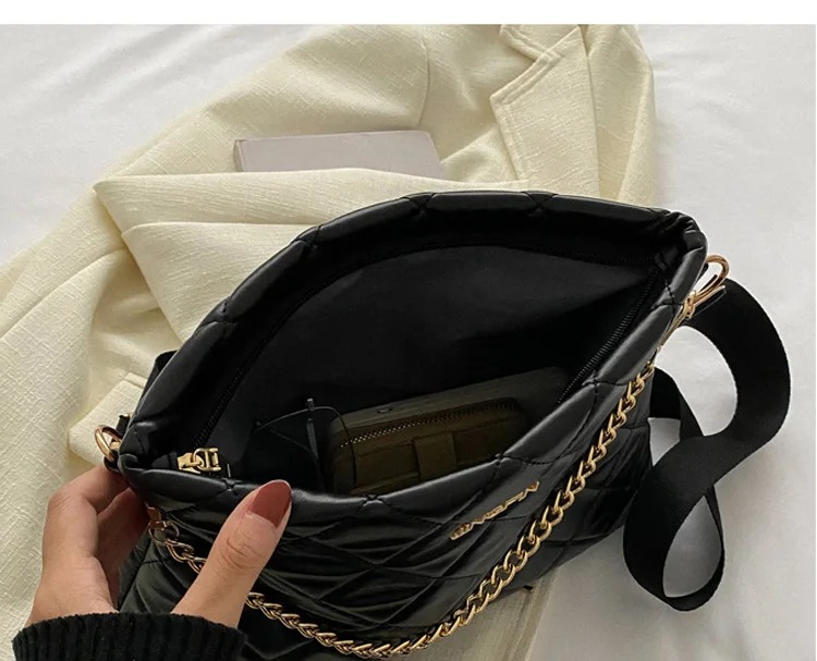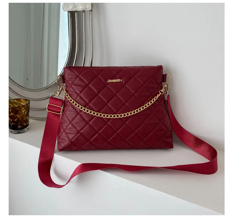 Korean Style Fashion Crossbody Bags For Women Large Handbags And Purses Wide Strap Chain Shoulder Bag