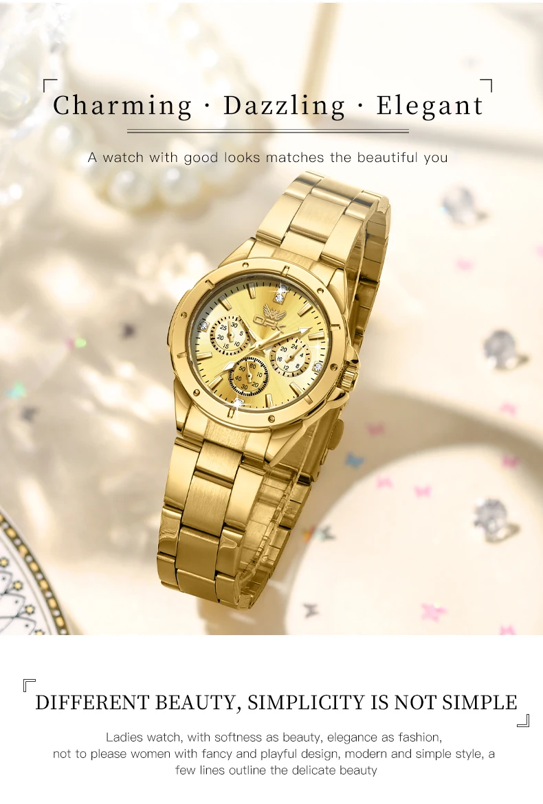 ✨ What is it - A stunning women’s wristwatch crafted with a fashionable stainless steel strap and a luxurious full gold finish, designed to complement any outfit while providing exceptional durability and waterproof capabilities.