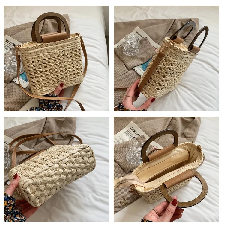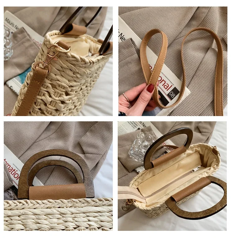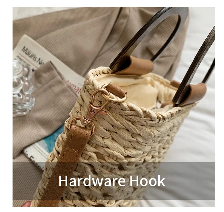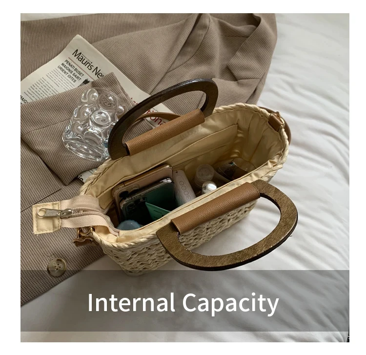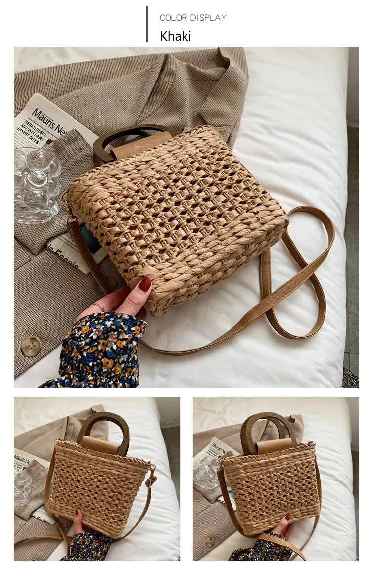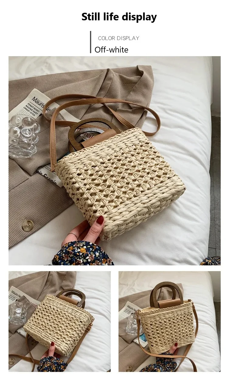 ☀️ What is it - Embrace summer style with our Designer Straw Tote Bag! This chic and practical handbag features a woven straw design, a trendy drawstring closure, and a sturdy wooden handle, making it perfect for beach outings and casual outings alike.